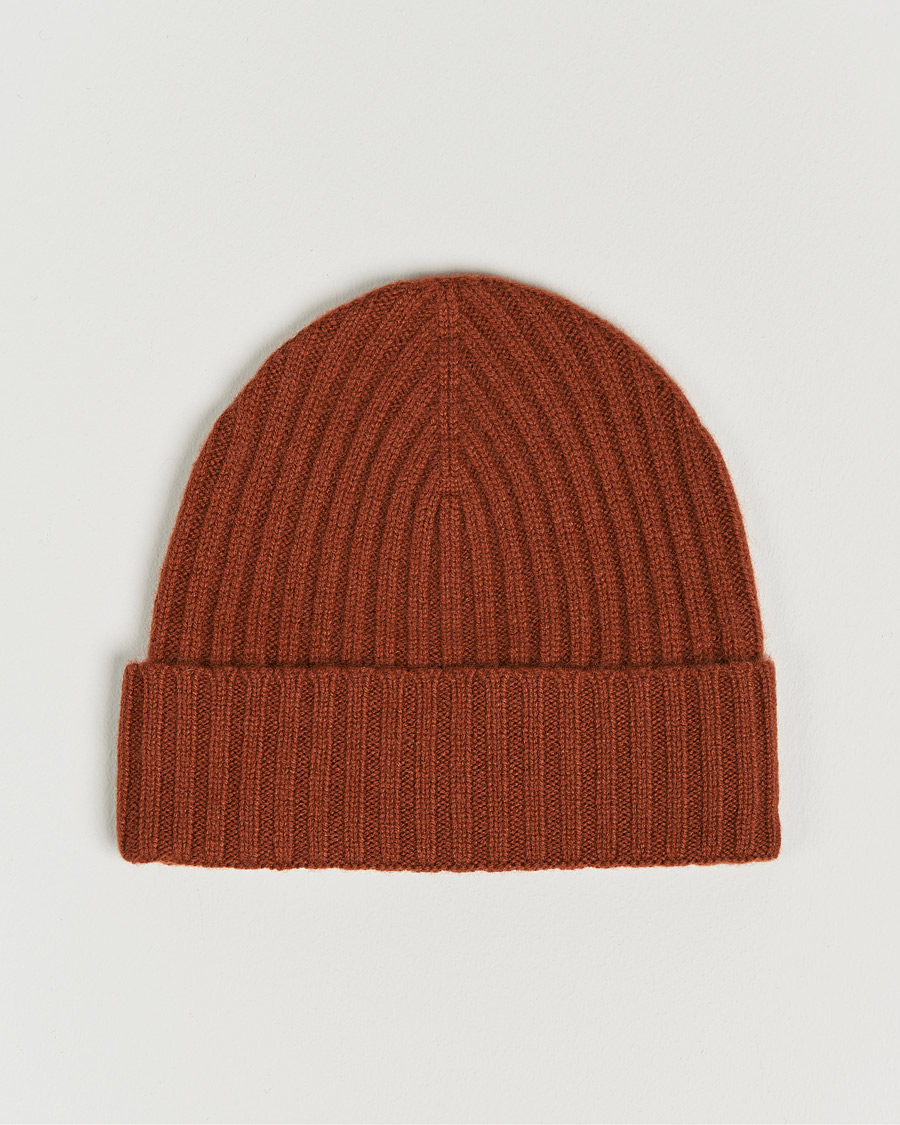 Rib Knitted Cashmere Cap Rust