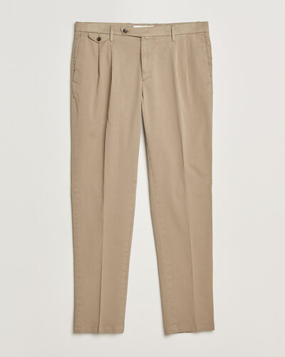 Easy Fit Pleated Cotton Stretch Chino Brown