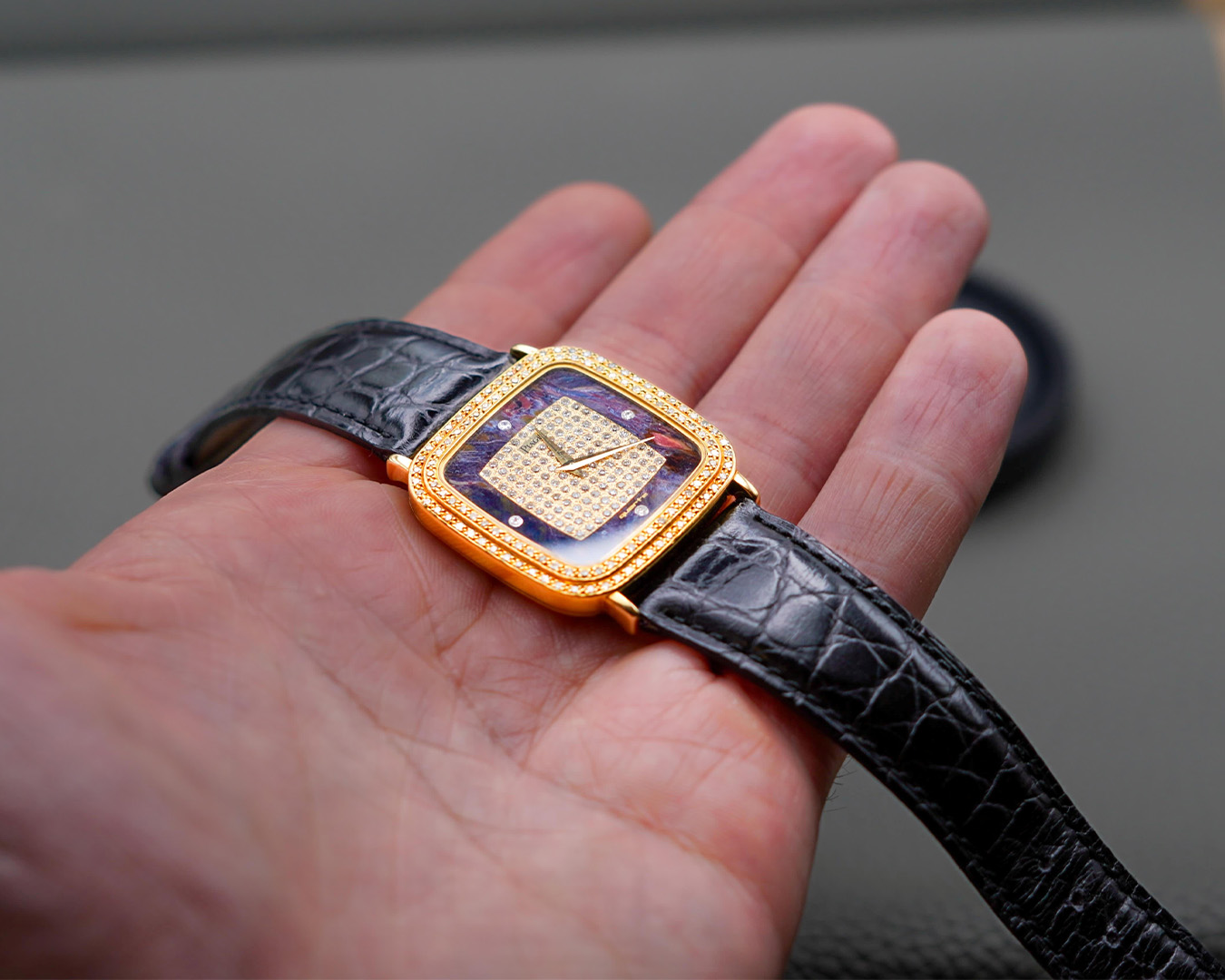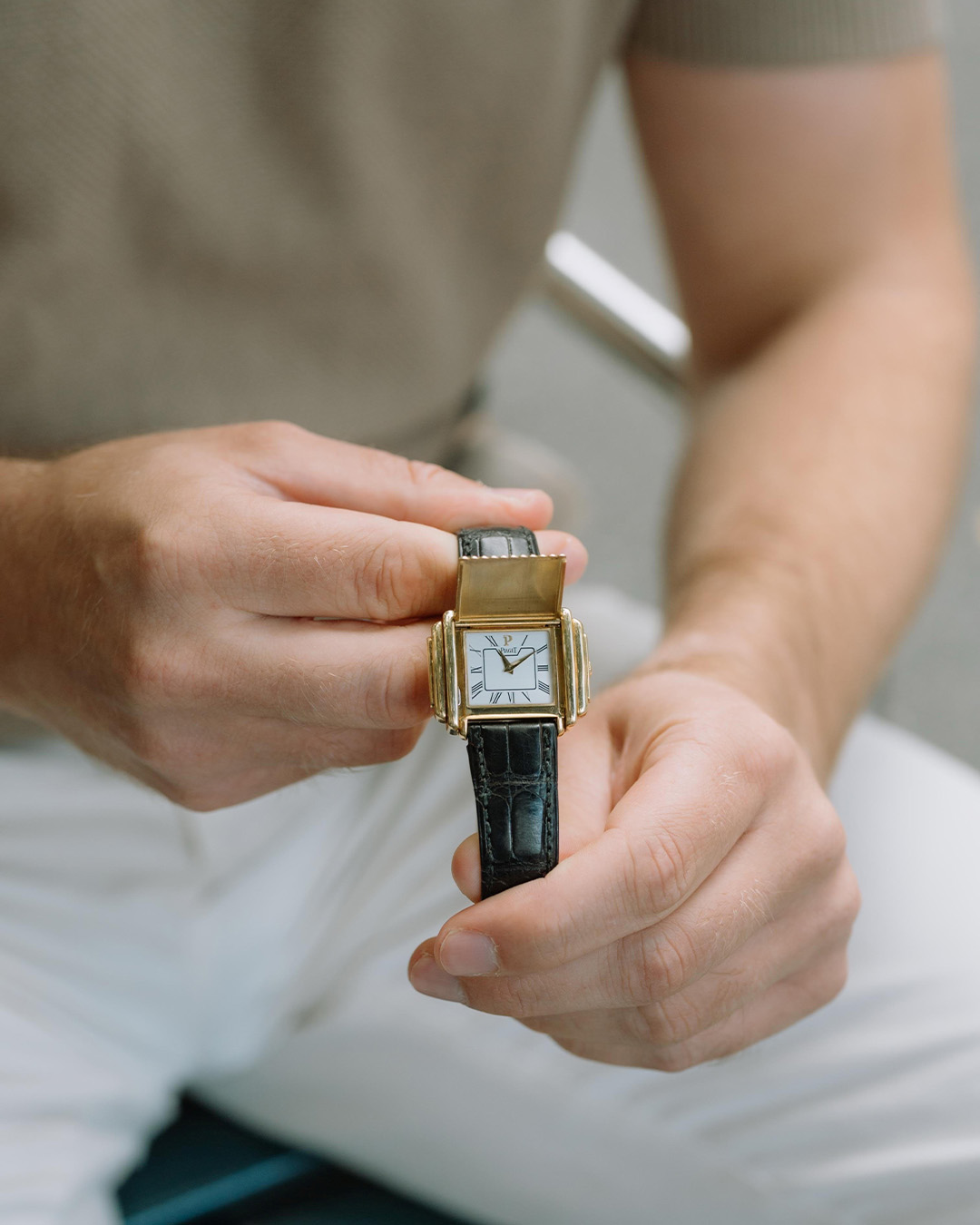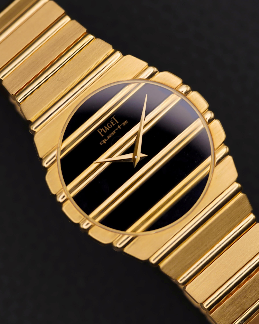 – Det var en Polo i helguld. Från tidigt 80-tal, säger han. Jag letade inte ens efter en Piaget, men när jag såg de horisontella guldlinjerna som fortsatte från länken rakt in på tavlan… Där började allt.