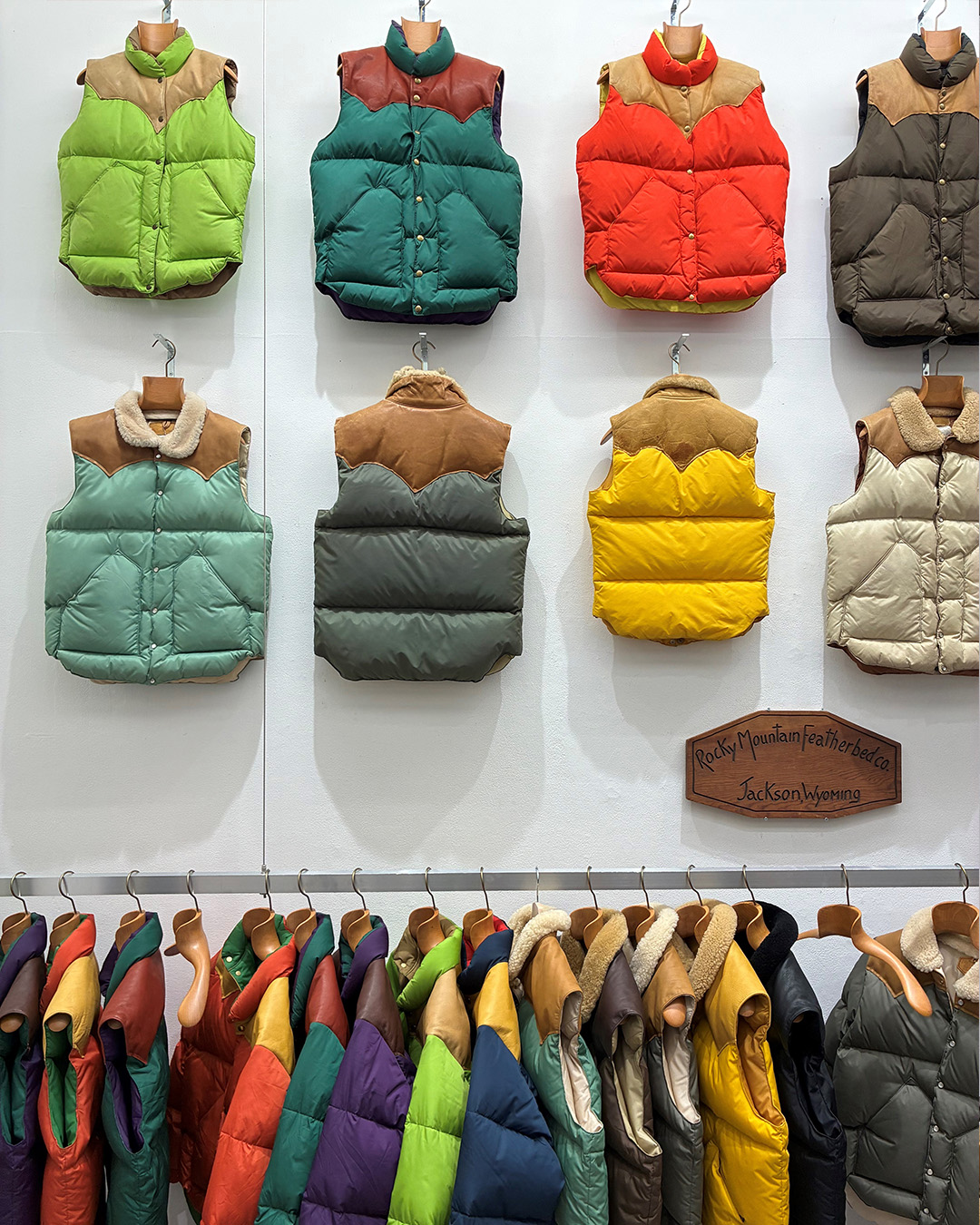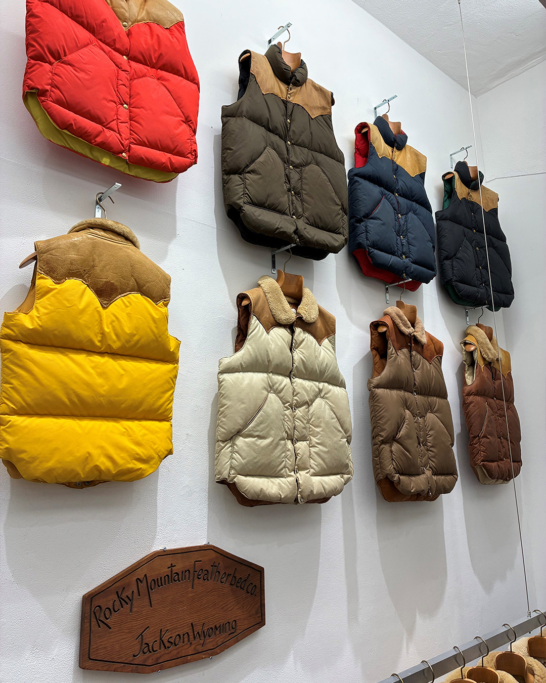 Rocky Mountain Featherbed grundades i Wyoming, USA på 1960-talet och är kända för sina färgglada dunvästar och jackor. Idag ägs företaget av herrmodegurun och entusiasten av vintage, Kinji Teramoto, som med respekt ser till att arvet lever vidare.