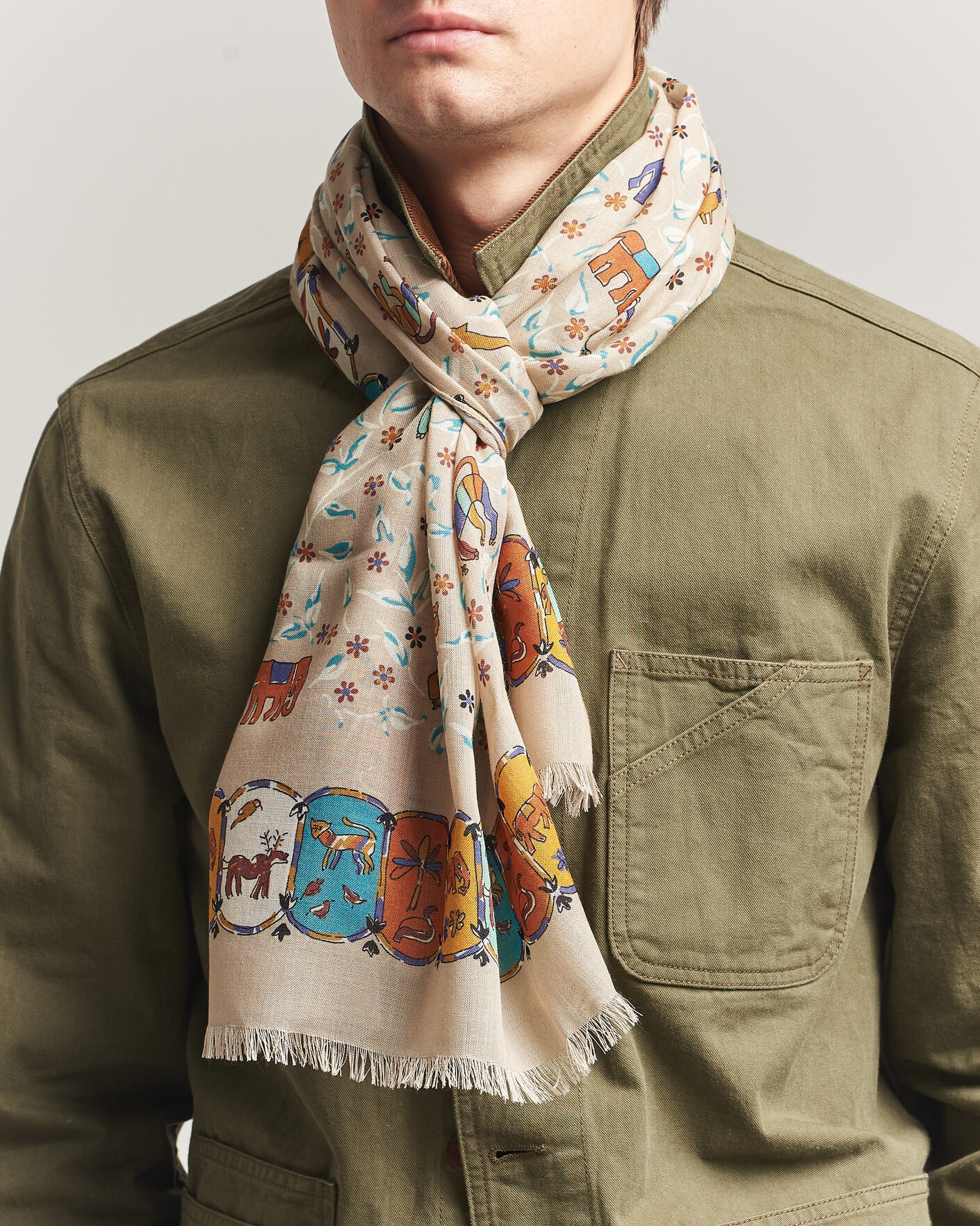 Tiger Garden Wool/Silk Bandana Green