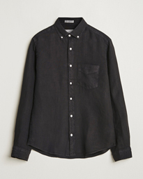 Regular Fit Garment Dyed Linen Shirt Black